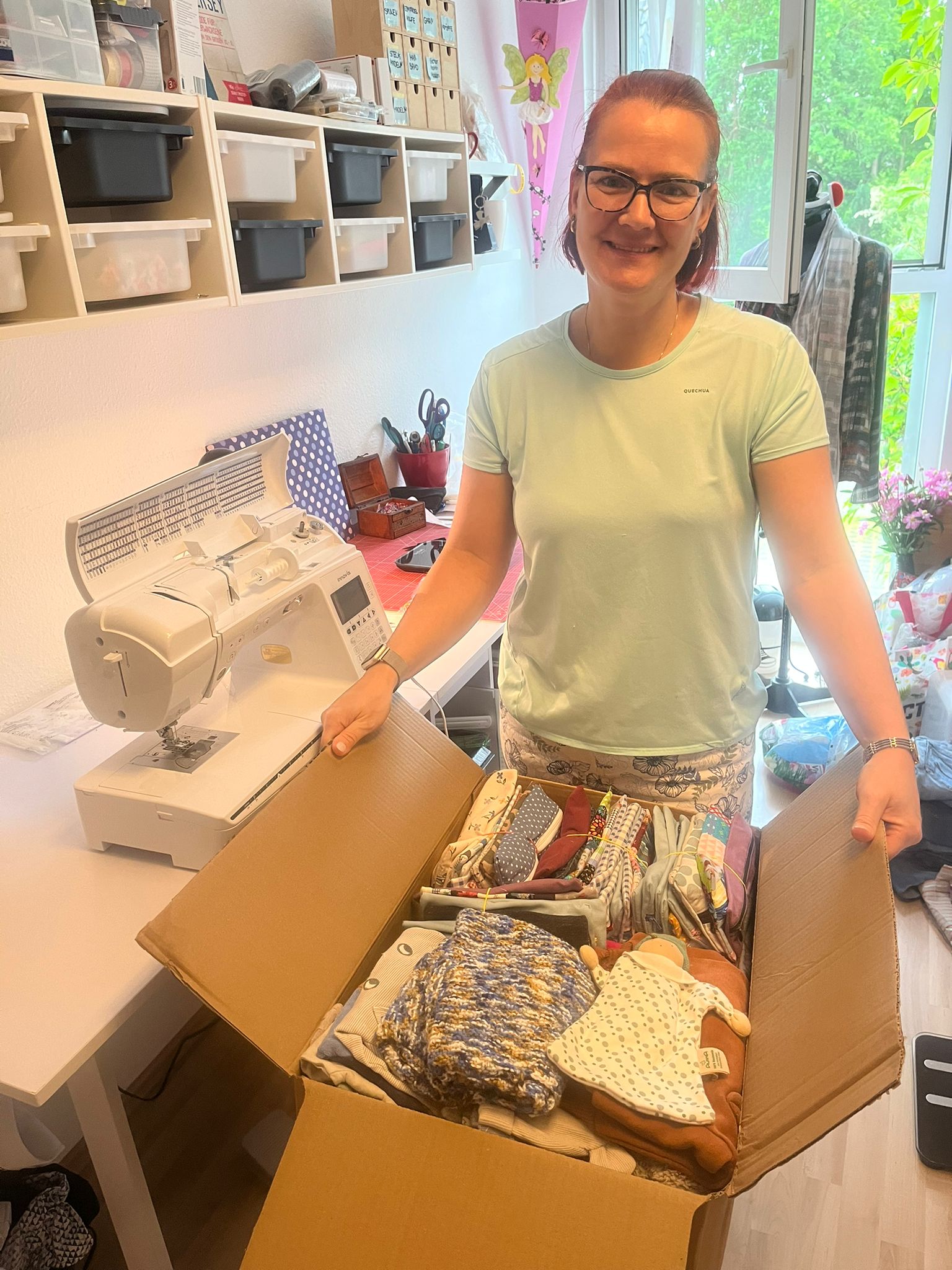 Davor haben Sie die Kinder schon mit Zahnbürstentaschen und Loopschals versorgt, damit sie im Winter nicht frieren, passend zu den gespendeten Winterjacken.
